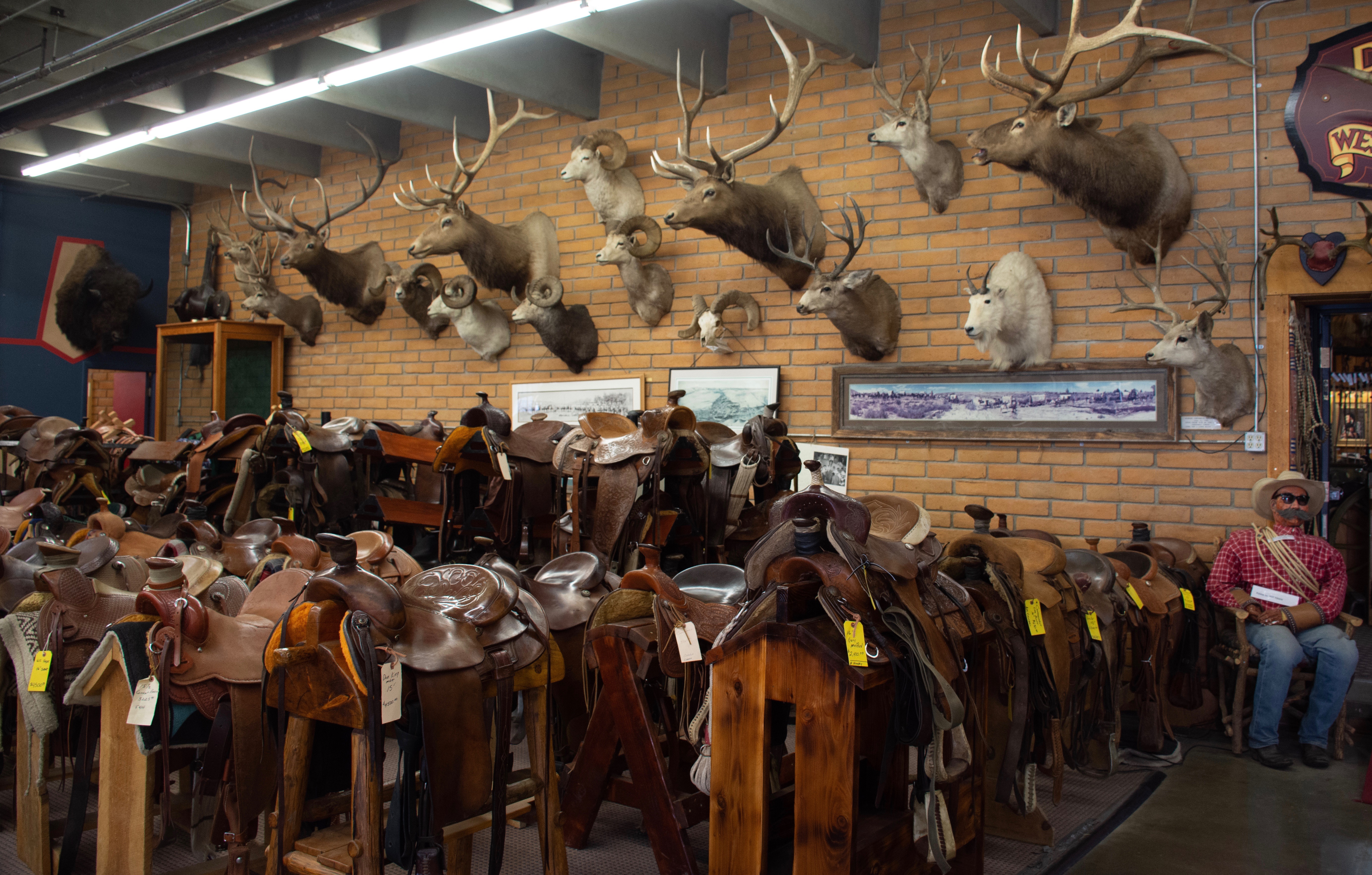 saddles and taxidermy at the Don King Museum in Sheridan Wyoming June 22, 2021 5535 × 3531 saddles and taxidermy at the Don King Museum in Sheridan Wyoming At the Don King Museum in Sheridan, Wyoming, you’ll see hand-tooled saddles, old wagons, and yes, taxidermy. a collection of western saddles and trophy animals on the wall